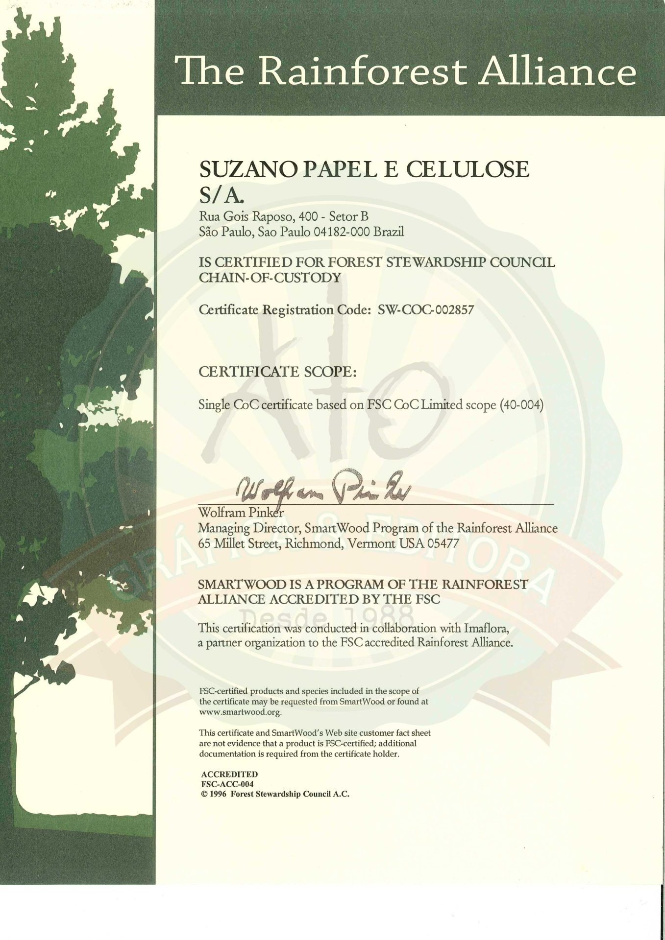 Somos certificados pela Suzano Papel e Celulose juntamente com a Imaflora – Instituto de Manejo e Certificação Florestal e Agrícula